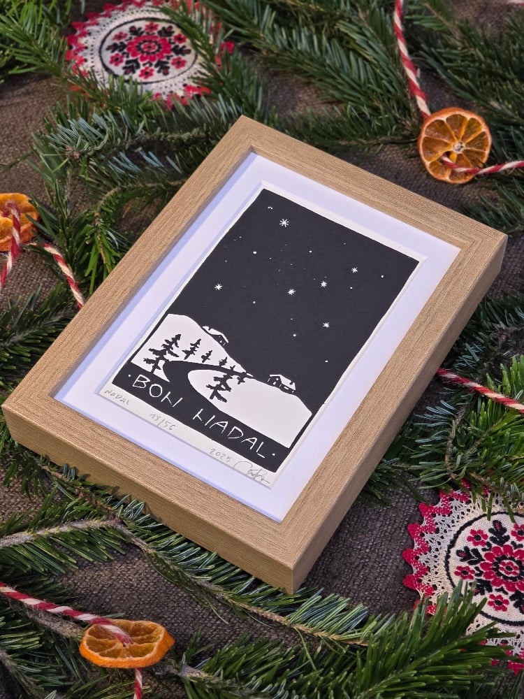 Bon Nadal • Linocut framed print