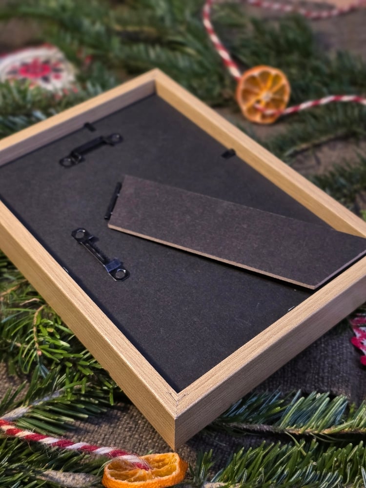 This print in its frame measures 19.5x15 cm circa, and is printed with plant-based ink on Favini Tintoretto 300g art paper.