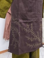 It's printed due to linocut blocks that I carve and print with plant-based inks I do by myself (with the herbs I harvest at the mount Baldo slopes, where I live), thanks to the aid of a manual press.